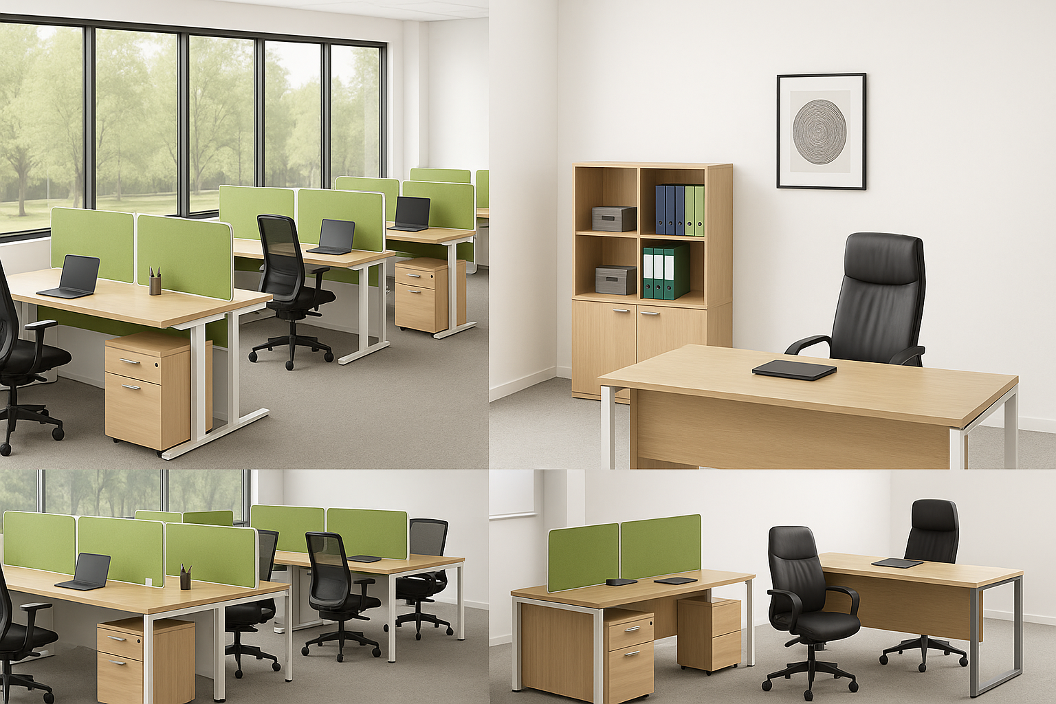 Modulare Schreibtische und Arbeitsplätze ermöglichen offene oder geschlossene Bürokonzepte. Sie lassen sich in Teamzonen, Einzelarbeitsplätze oder Hot-Desking-Lösungen integrieren.